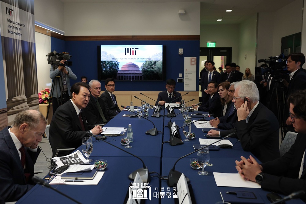 윤석열 대통령은 오늘(28일, 금, 현지시간) 오전 대한민국 대통령으로는 처음으로 매사추세츠 공과대학(MIT)을 방문하여 ‘MIT 디지털바이오 석학과의 대화’ 시간을 가졌습니다. 오늘 해외 석학과의 대화는 대통령 취임 후 세 번째로, 지난해 9월 토론토대 AI 석학, 올 1월 스위스 연방공대 양자 석학과의 대화에 이어 이번이 세 번째입니다.