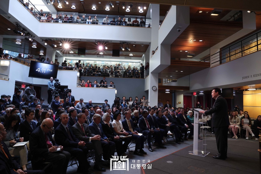 조국의 독립과 미래를 꿈꾸며 공부했던 이곳 하버드 대학교에서 대한민국의 제20대 대통령으로서 연설하게 돼서